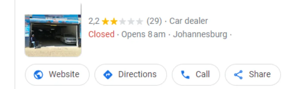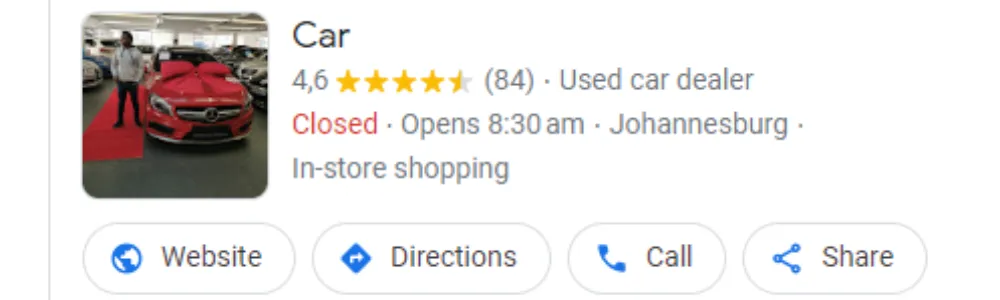 Businesses with many google reviews and high quality rankings will show up the highest on google search when a customer searches for their service in the local area. EG. When someone searches mechanic workshop Gauteng, the business with the most reviews and highest rating will show up at the top. This business will get the most of the phone calls from customers searching on google.